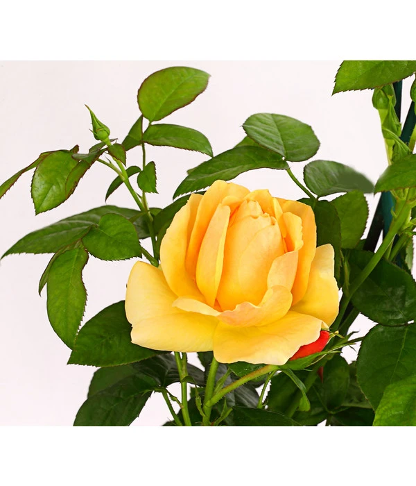 Wie jede Edelrose liebt auch die Beetrose ‚Hansestadt Rostock®‘ Sonne und Wärme, weshalb der Standort mindestens 6 Stunden am Tag Sonne bekommen sollte. Rosen sind Tiefwurzler und brauchen ein großes Pflanzloch und lockeren, humosen Boden. Die besten Wachstumsbedingungen geben Sie der Rose, wenn Sie gleich beim Pflanzen Dehner Markenqualität Rosenerde mit ins Pflanzloch geben. Die notwendigen Nährstoffe führen Sie der Rose am besten durch den Dehner Bio Rosendünger zu, und zwar 2-4 mal pro Jahr vom zeitigen Frühjahr bis zum Spätsommer. Vor dem Winter wird die Erde um die Veredelungsstelle herum angehäuft, zusätzlich ist eine Abdeckung mit Nadelholzreisig oder Rosen-Rindenmulch empfehlenswert. Im Frühjahr sollten Sie die öfter blühende Pflanze auf 4-6 Augen pro Haupttrieb zurückschneiden, damit sie schön kompakt und blütenreich bleibt.