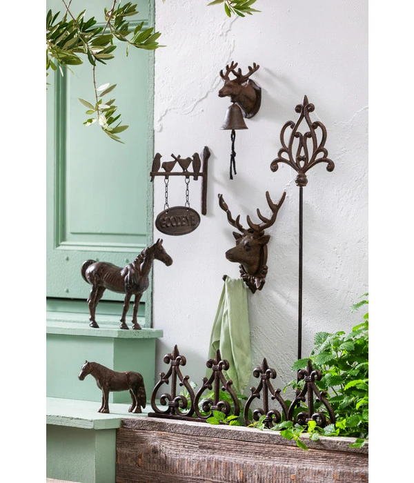 Sichern Sie sich die gusseiserne Beeteinfassung und werden Sie zum Garten- und Landschaftsdesigner! Teilen Sie einzelne Bereiche stilvoll ab, indem Sie mehrere der Metallstäbe nebeneinander im Boden versenken. So kommen Ihre Blumen und Büsche noch besser zur Geltung. Bei der Länge sind Sie natürlich flexibel, je nachdem, wie viele Elemente Sie einsetzen. Egal, ob Sie gerade Reihen oder Bögen kreieren möchten, mit der gusseisernen Beeteinfassung ist beides möglich. Dabei entsteht ein dekorativer Look im Stil eines hochwertigen Zaunes aus Gusseisen. Die verschnörkelte Formgebung erinnert an umgedrehte Herzen und wirkt ebenso verspielt wie romantisch.