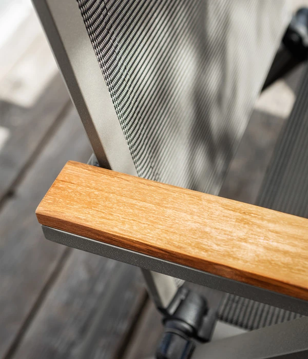 Kennen Sie einen echten „Verwandlungskünstler“ unter den Gartenmöbeln? Dann dürfen wir Sie mit ihm bekannt machen: Es ist der Relaxsessel Colmar. Der Relaxsessel Colmar ist immer genau das, was Sie gerade brauchen: Frühstücksessel für den schnellen Cappuccino in der Morgensonne, bequemer Sessel zum Zeitunglesen, Sonnenliege und stilvoller Dining-Stuhl beim Mittagsimbiss wie bei der gesellig-zünftigen Grillparty. Denn der Relaxsessel Colmar bietet Ihnen Sitzkomfort auf höchstem Niveau. Und dazu ein Design, das jedes Outdoor-Ambiente mit seiner gediegenen Eleganz bereichern wird. Vor allem die Kombination aus funktionalem Aluminiumgestell, dem leichten Kunststoffgewebe und den Armlehnen aus FSC©-Teakholz beeindruckt mit ihrer modernen Wohnlichkeit, die auf Ihrer Terrasse eine einladende Atmosphäre verbreiten wird.