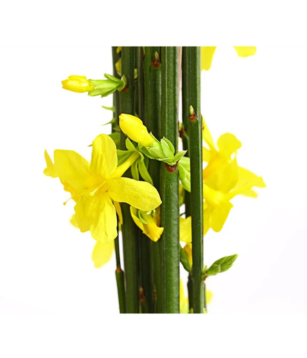 Wenn sich ein Ziergehölz mit eine Fülle kleiner, leuchtend gelber Blüten schmückt, ist dieser Anblick zu jeder Jahreszeit eine Bereicherung für den Garten. Spielt sich dieses Schauspiel aber im zeitigen Frühjahr ab, wenn alle anderen Pflanzen noch im Winterschlaf liegen, ist der Zierwert für den Garten einmalig. Der Winter-Jasmin ist einer der schönsten Winterblüher, der Farbe in den winterlichen Garten bringt. Je nach Witterung öffnet er seine gelben Blüten schon vor Weihnachten, bei sehr kalten Temperaturen wartet er bis Februar/März und behält seine Blüten dann bis in den April. Von weitem ähneln die Blüten einer Forsythie, was zu verwunderten Blicken Ihrer Nachbarn führen kann, deren Forsythie zu diesem Zeitpunkt noch keineswegs in Blühlaune ist. Winter-Jasmin ist ein immergrüner Spreizklimmer mit überhängendem Wuchs, der je nach Lage bodendeckend oder aufrecht und rankend wächst und eine Höhe/Länge von 2 – 3 m erreichen kann.